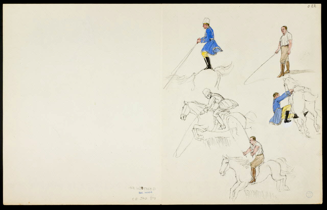 partie d'un ensemble de dessins, Dresseur d'éléphant, Numéros équestres