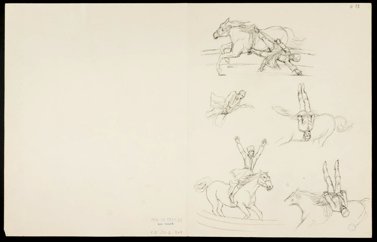 - Revers : scène : homme : écuyer, acrobate, acrobatie, équestre, dressage, montre d'animaux : cheval, spectacle : cirque
