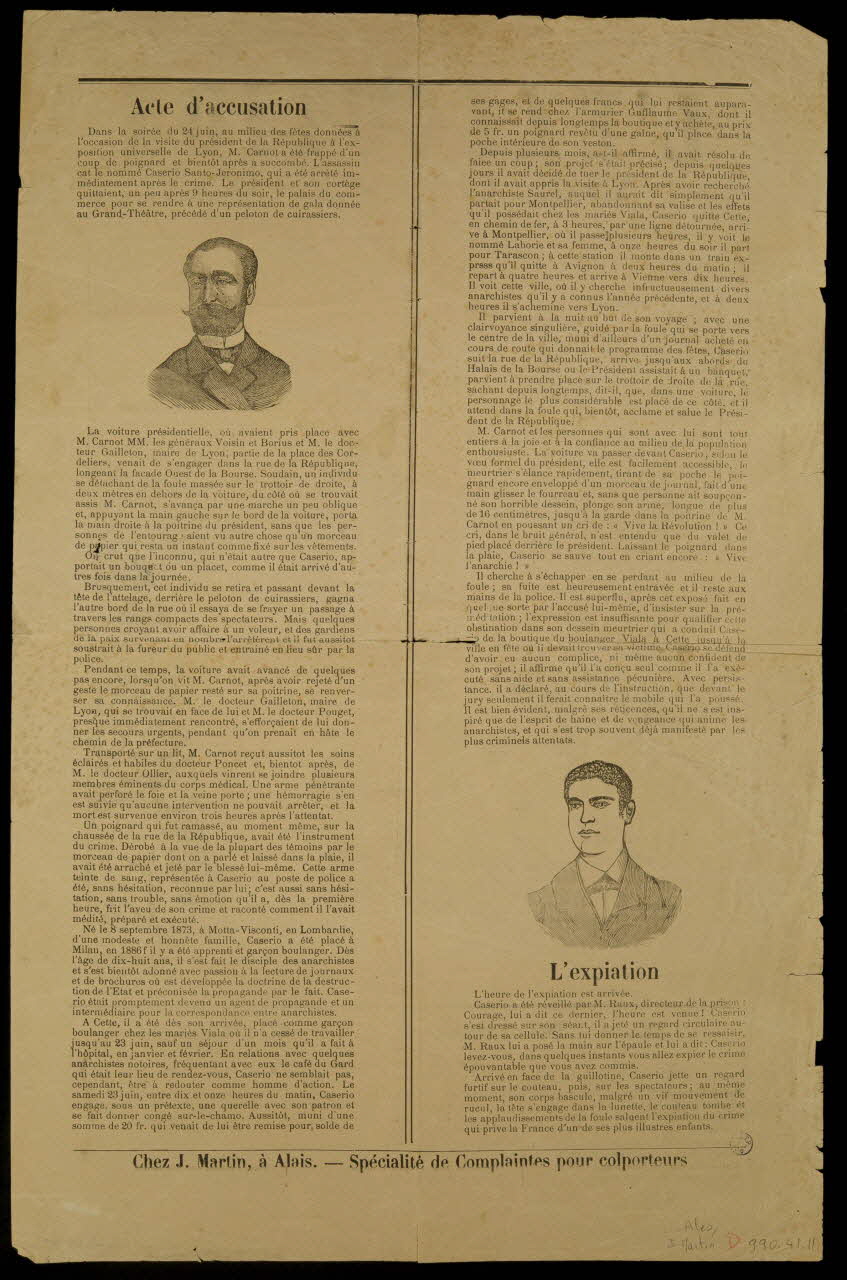 - Portrait : Caserio Mr : mise à mort : Carnot Sadi