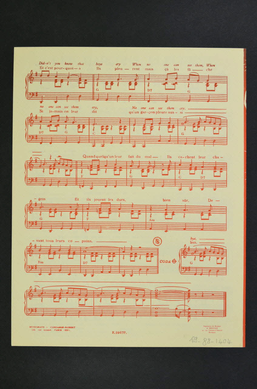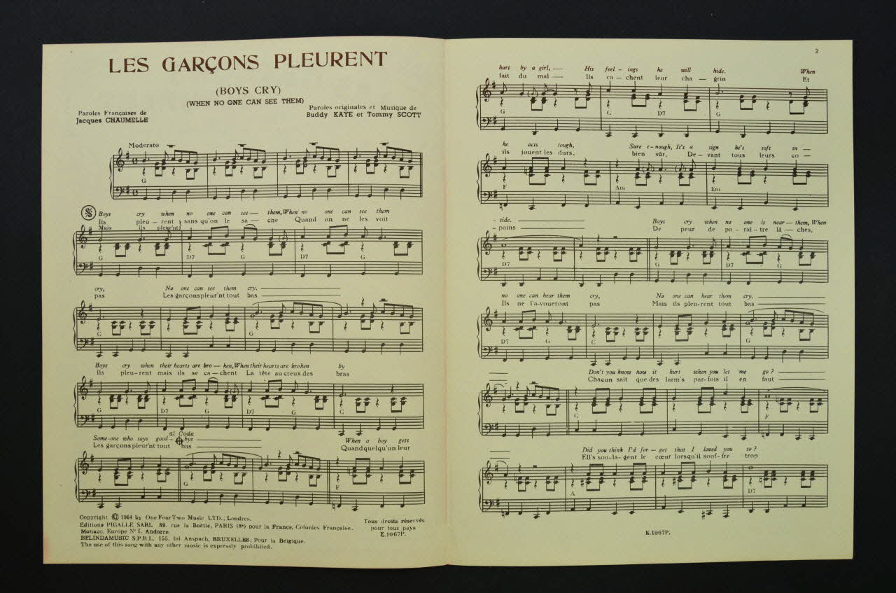 chanson, petit format, partition de musique, Les garçons pleurent