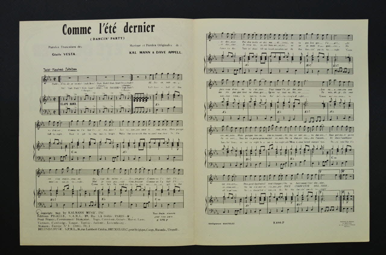 De : Date : 1962Paroles anglaises / Paroles anglaises / Paroles françaises