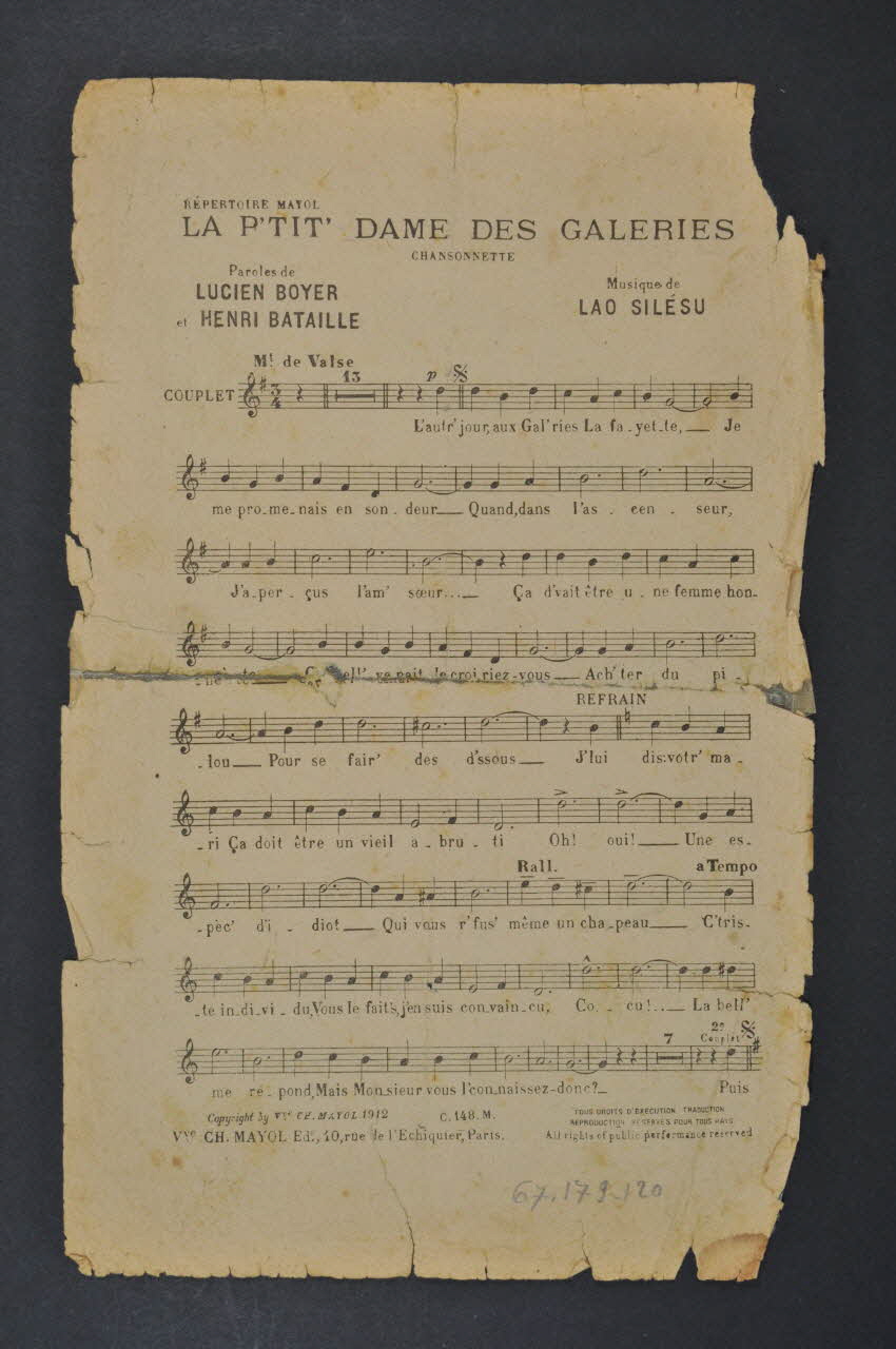 partition de musique, chanson, petit format, La p'tit' Dame des Galeries