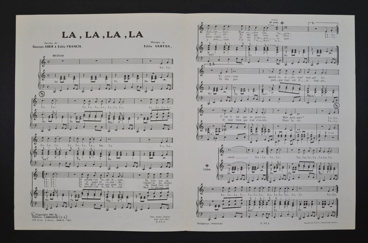 chanson, partition de musique, petit format, La la la la la