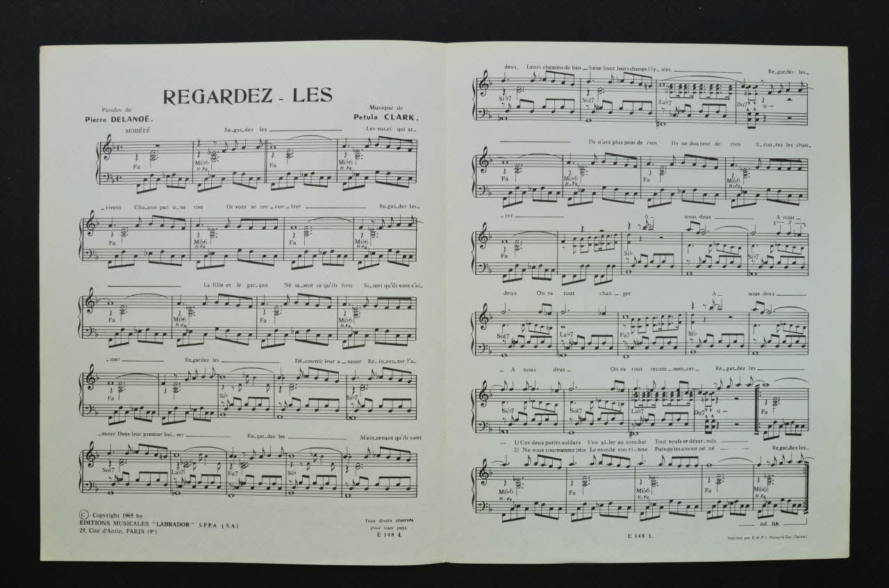 Sur la couverture, les inscriptions renseignent le titre de la chanson, le nom des auteurs, de l'artiste et de l'éditeur. A l'intérieur, partition et paroles de la chanson. Le dos est laissé vierge.Matériaux et techniques