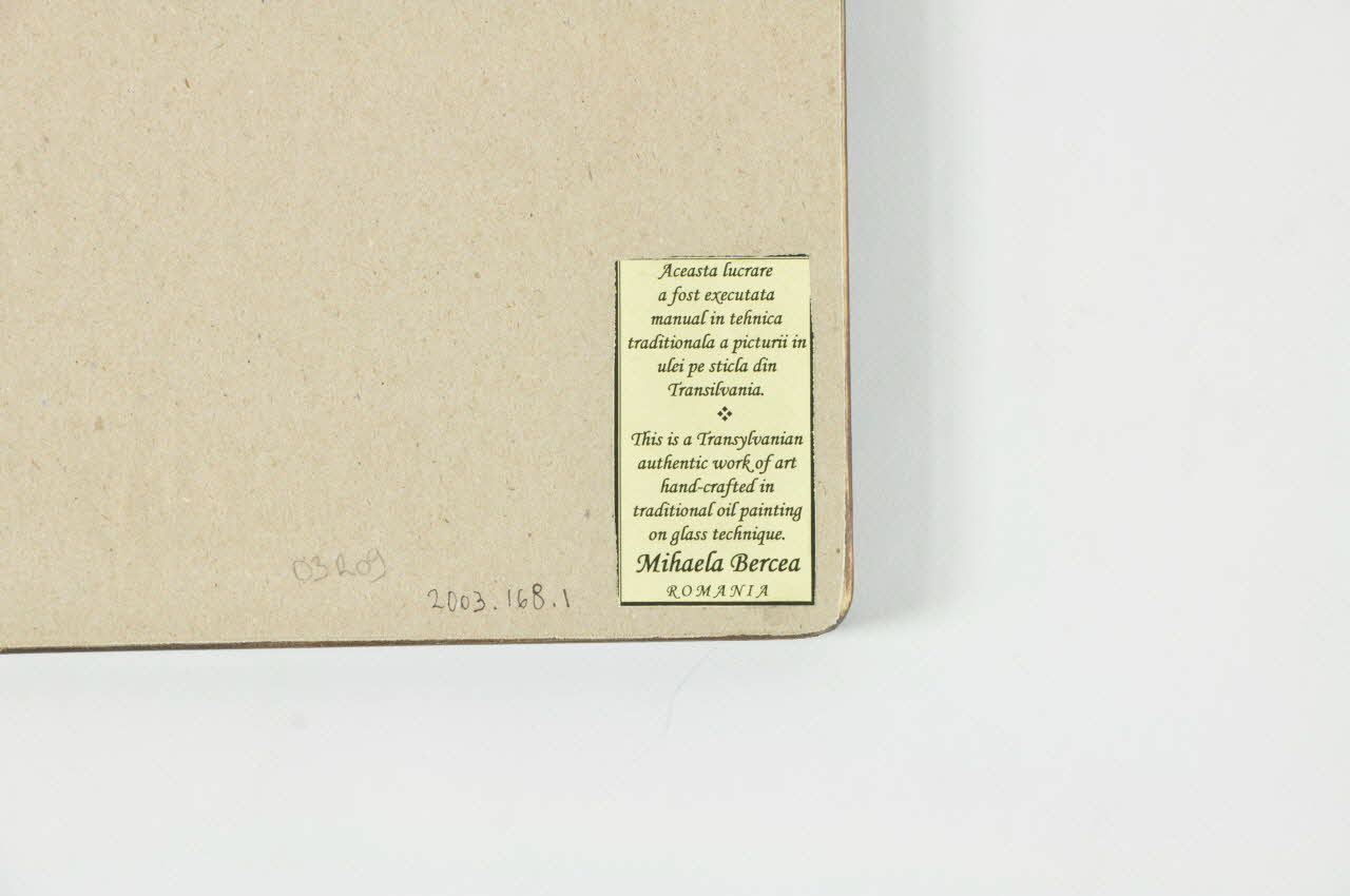 De : Lieu : Brad, Hunedoara, Transylvanie, RoumanieDate : 2003Mihaela BERCEA emploie la dorure comme argument de vente mais personnellement y tient peu. Pharmacienne, elle peint car cette activité lui apporte un revenu complémentaire. Elle est très croyante.