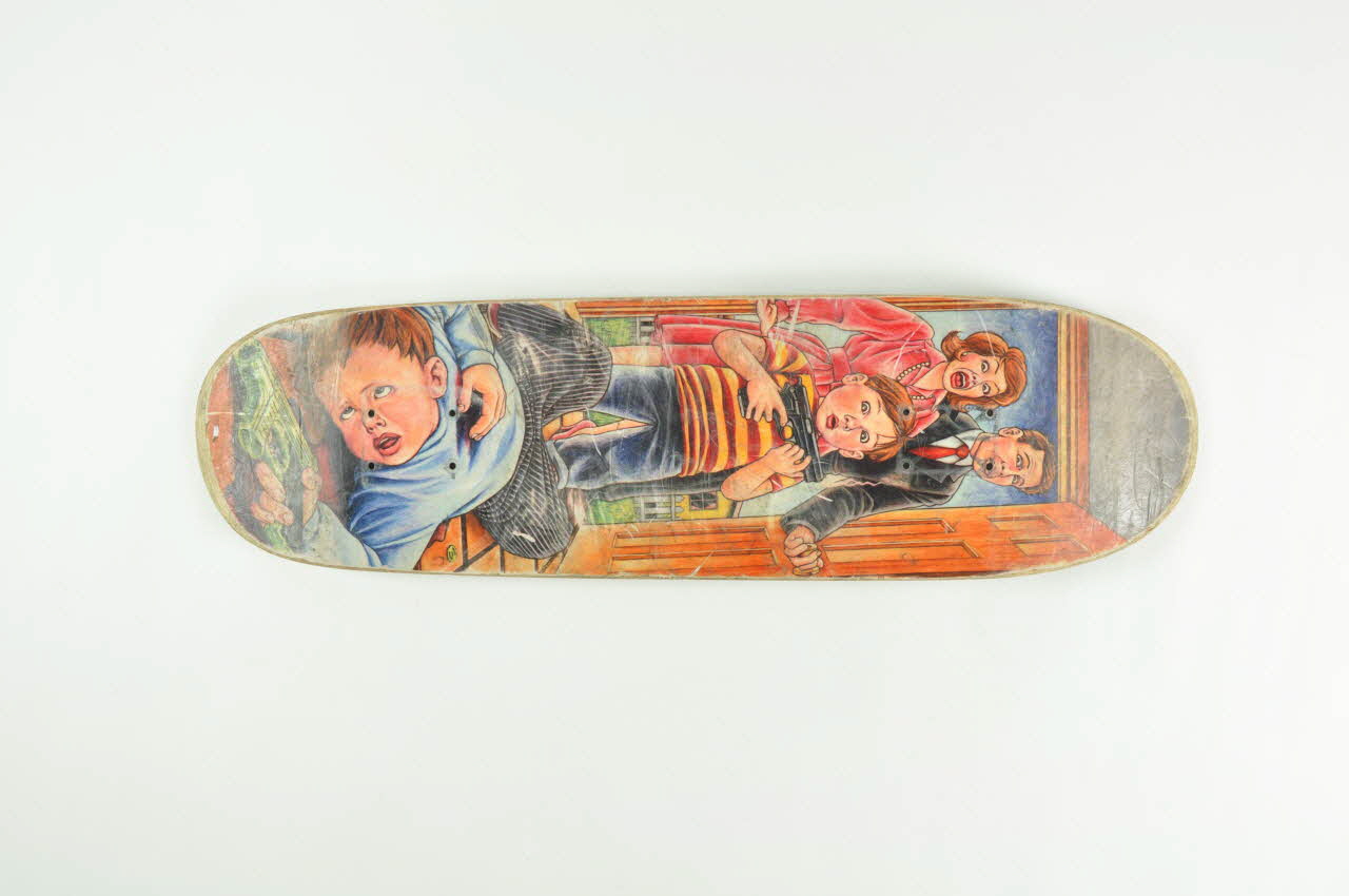 Lieu : FranceDate : 1992 - 1993Planche de skateboard utilisée durant une courte période car présentant un défaut. Planche retournée au distributeur (Vaissette).