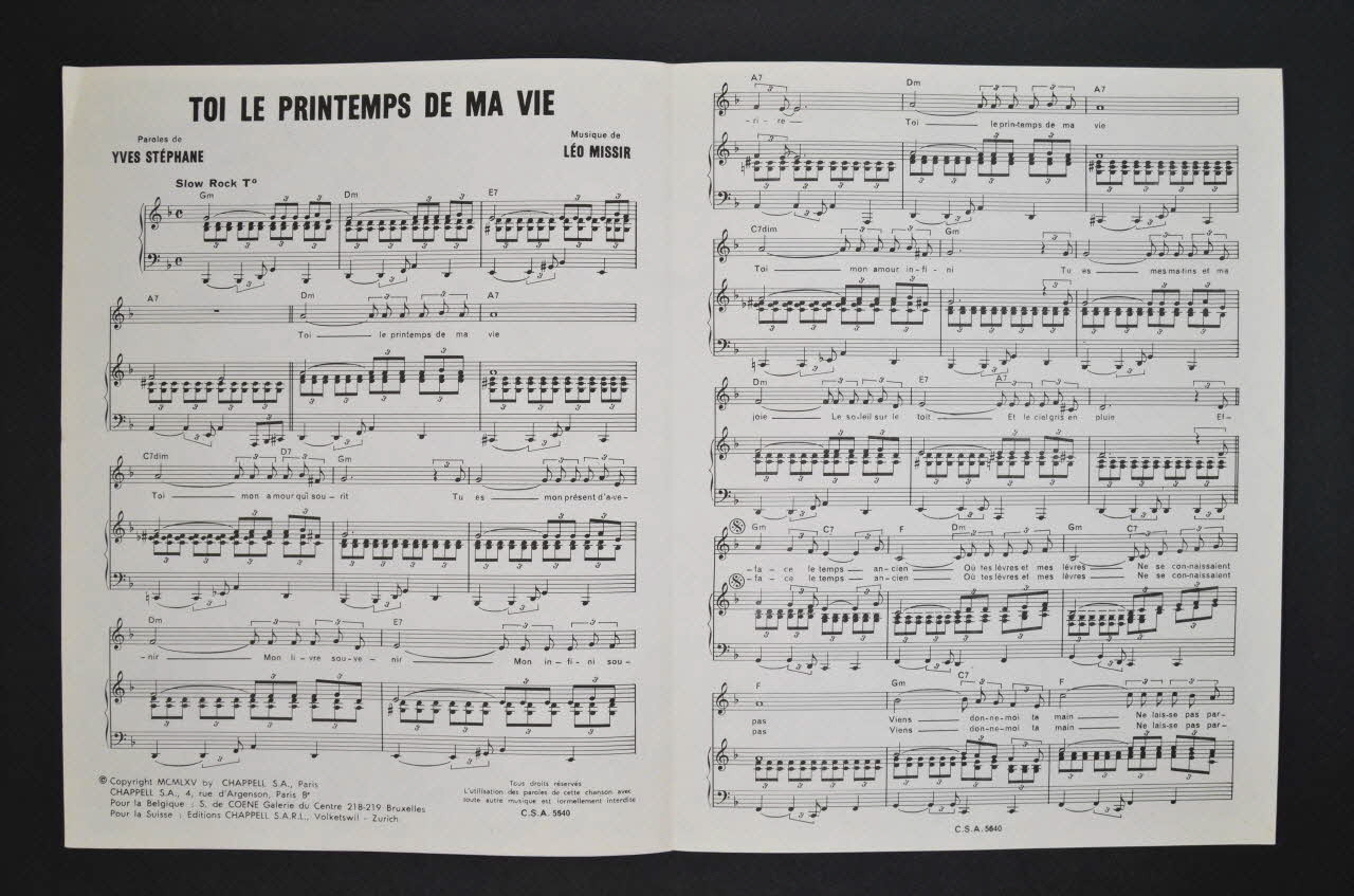 partition de musique, chanson, petit format, Toi le printemps de ma vie