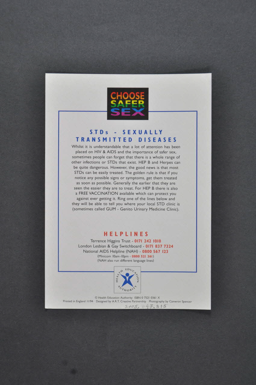 STDs - SEXUALLY // TRANSMITTED DISEASES (en lettres bleues), versoAuteur, nom d'association, concernant le lieu d'édition, concernant la date