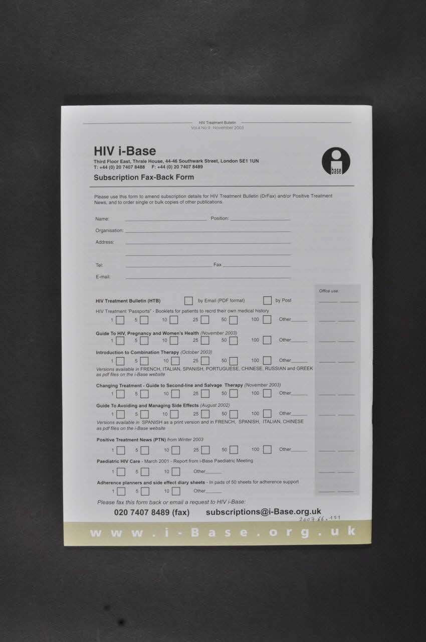 Published by HIV i-Base (En bas, sur le bandeau vert), sur la couvertureDécor