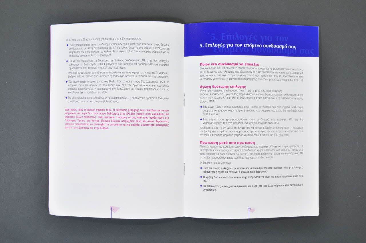 Il s'agit d'une brochure en grec réalisée en papier glacé épais. Elle a 24 pages numérotées reliées entre elles par des agrafes métalliques.
