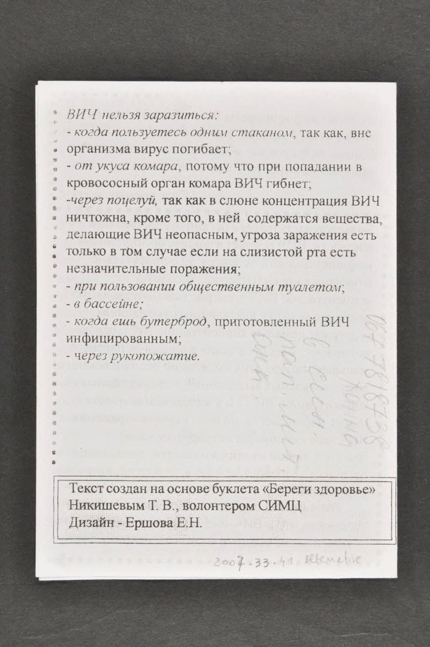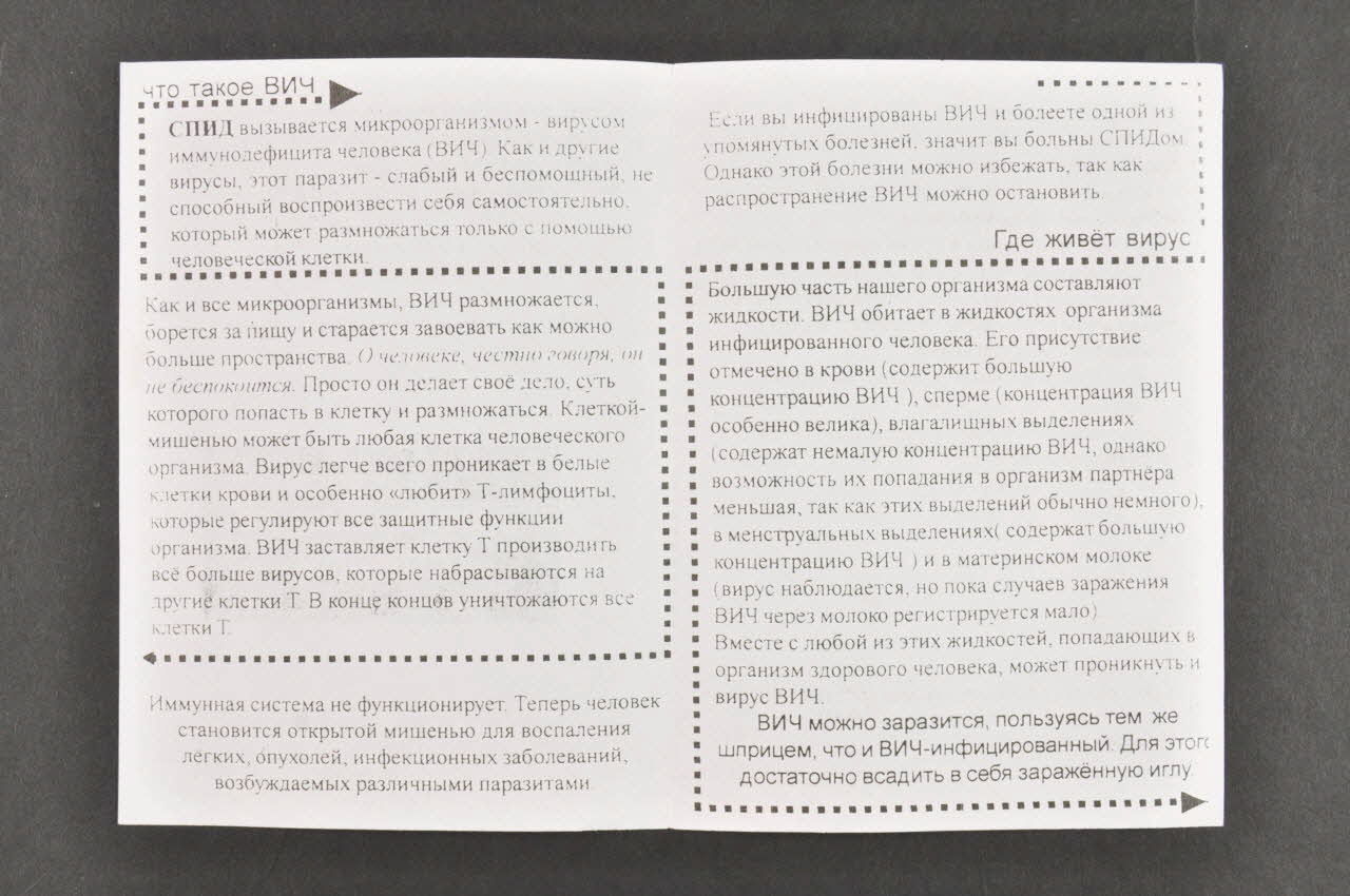 Réalisé en papier imprimé en noir, le dépliant est de forme rectangulaire et est plié en deux. Il porte des inscriptions en alphabet cyrillique.