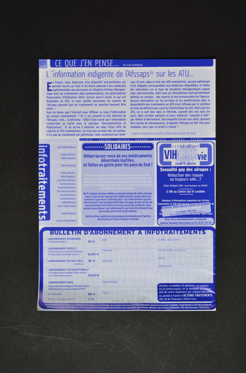 ODILE VERGNOUX // medical@actions-traitements.org (à droite), sur la couvertureNom d'association, adresse
