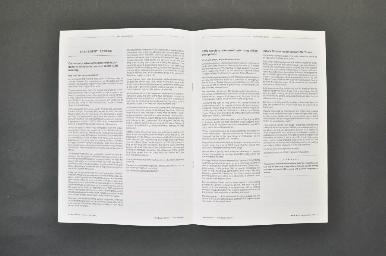 CONTENTS // EDITORIAL 2 // [...] // TREATMENT ALERT 3 // [...] // CONFERENCE REPORTS 5 // [...] // TREATMENT ACCESS 10 // [...] // ANTIRETROVIRALS 13 // [...] // DRUG INTERACTIONS 14 // [...] // PREGNANCY AND MTCT 15 // [...] // PRIMARY CARE 15 // [...] // OTHER NEWS 16 // [...] // ON THE WEB 16 // PUBLICATIONS AND SERVICES FROM I-BASE 17 // PUBLICATION ORDER FORM 20 (Au centre), sur la couvertureNuméro