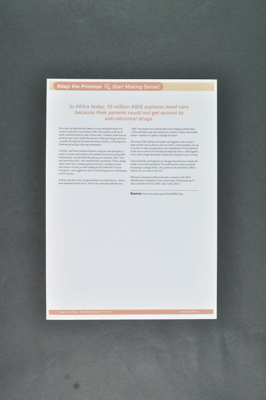 Fichier, "Keep The Promise. Start making sense" (Tenez la promesse. Commencez à lui donner un sens" / n° 2 Demand a better deal for the poor of the world in 2005 (Demandez une meilleure distribution pour les pauvres du monde en 2005)
