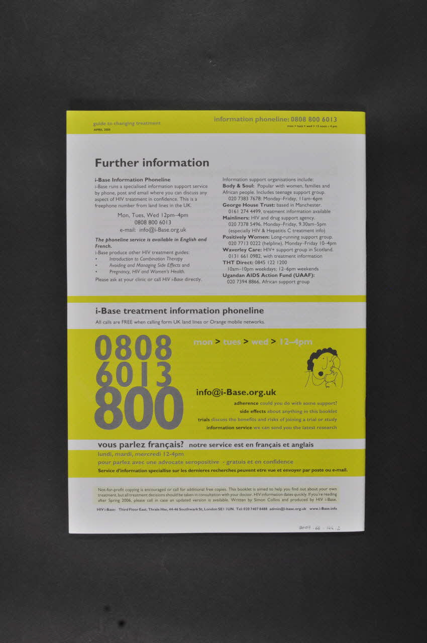 HIV i-Base : Third Floor East, Thrale Hse, 44-46 Southwark St, London SEI (Imprimé en petits caractères noirs sur blanc dans le bas), versoNuméro