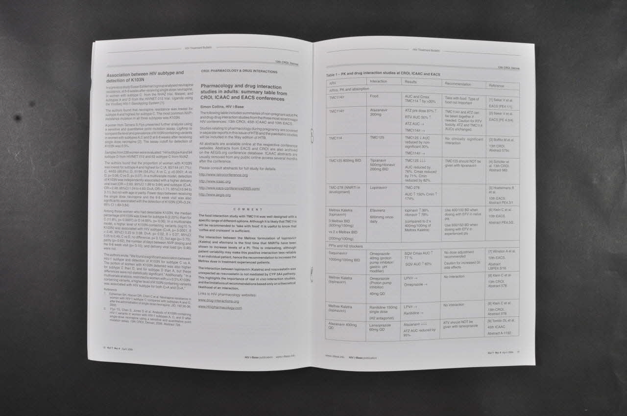 HIV treatment bulletin // h-tb (En haut, sur le bandeau mauve, à droite), sur la couvertureSommaire