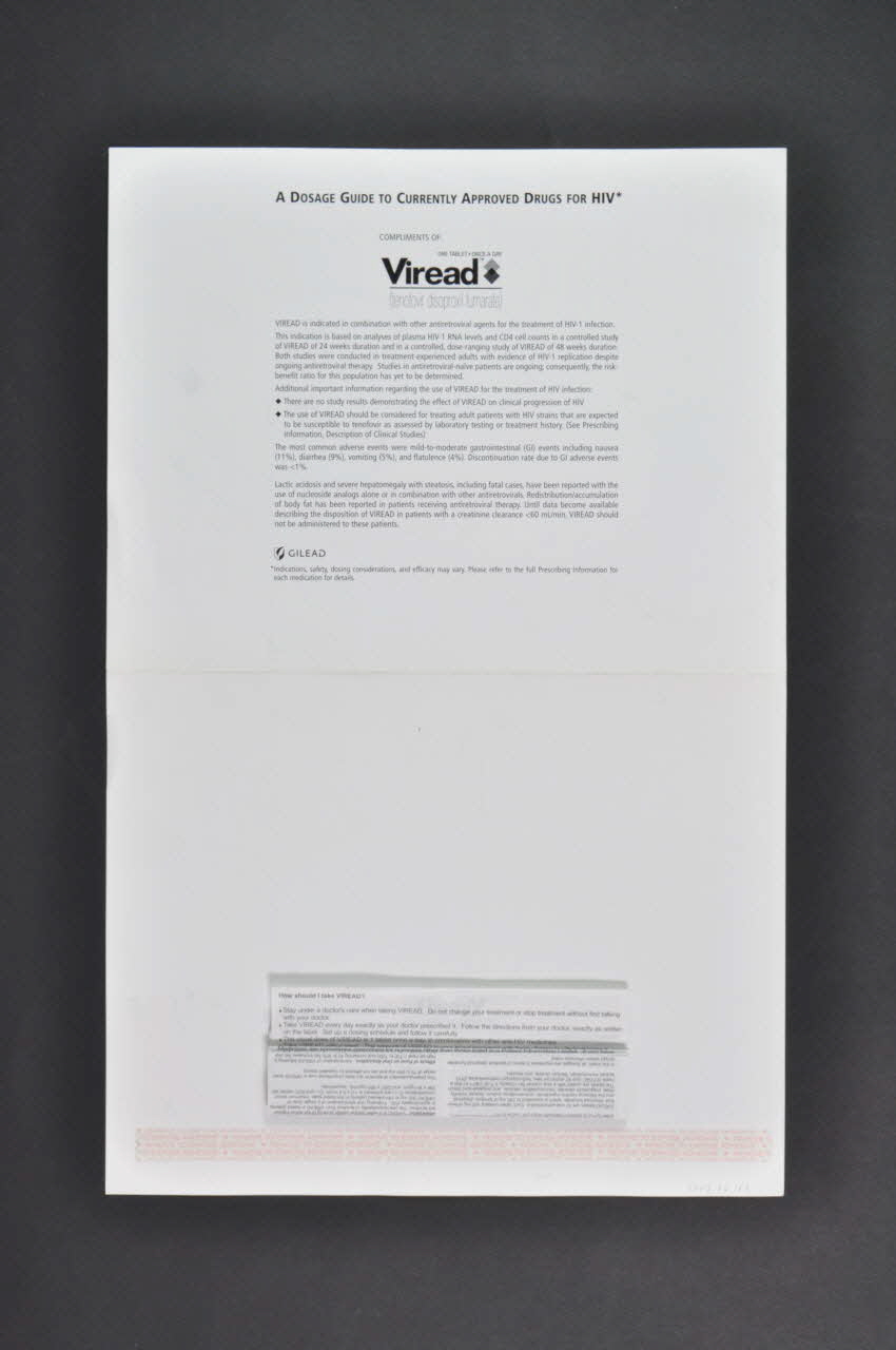 affichette, "A dosage guide to currently approved drugs for HIV" (Guide de dosage des traitements du VIH)