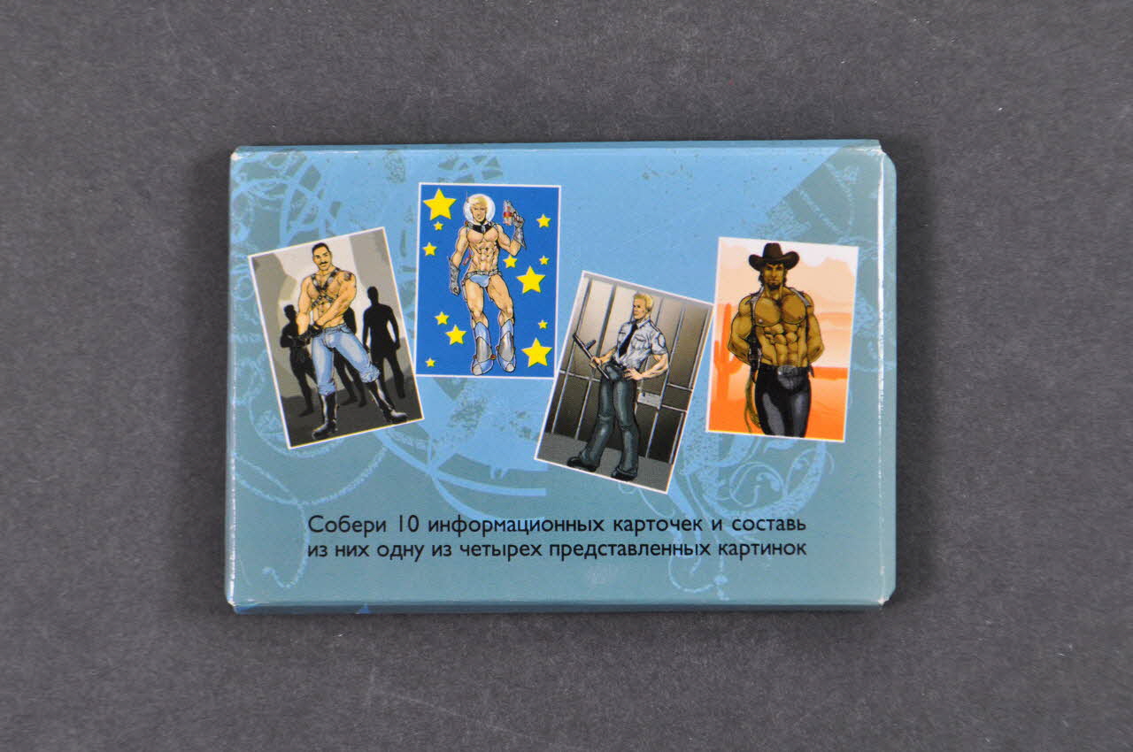 A l'intérieur de l'enveloppe est rangé le jeu, constitué de dix cartes. Le recto de celles-ci forme un puzzle représentant un homme, musclé, vêtu d'un jean et de cuirasses noires, sur un fond gris.