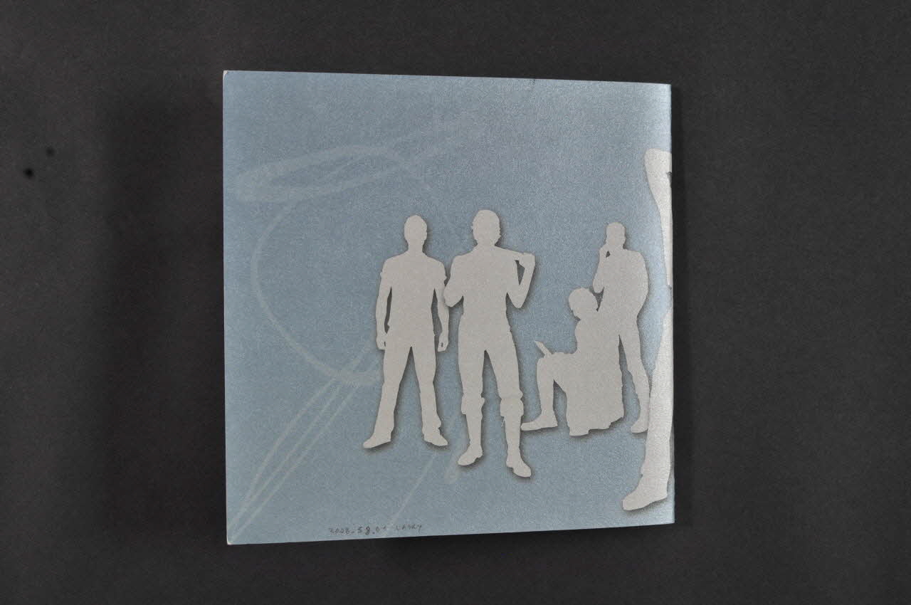La couverture comprend un titre imprimé en blanc dans le haut. Six carrés de couleur (rouge, orange, jaune, vert, belu et violet) sont imprimés juste en dessous. Au centre on trouve une série de cinq silhouettes grises se tenant debout. L'arrière présente un décor semblable de quatre silhouettes.
