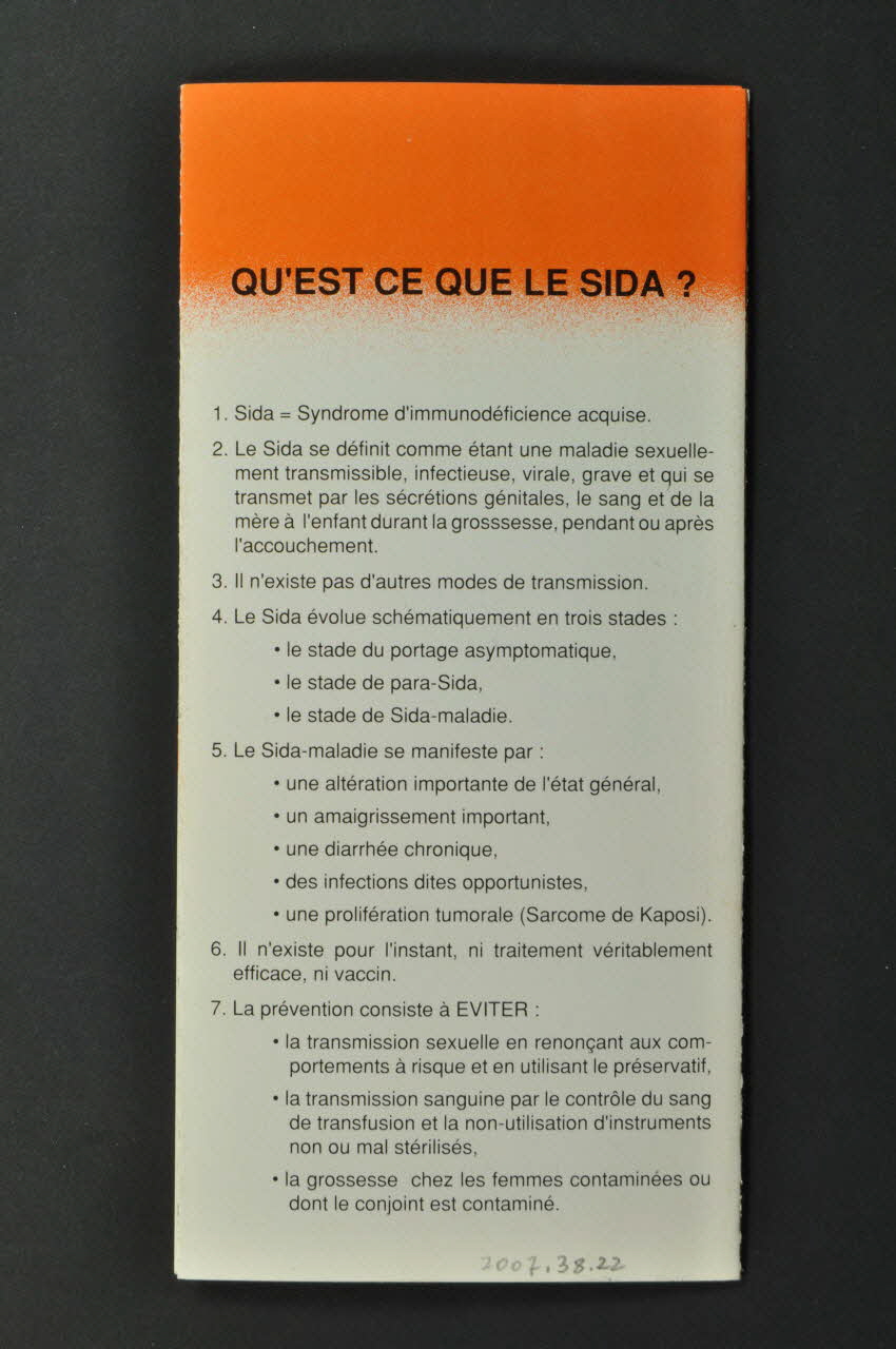 Dépliant, "Professionnels de la Santé. Prenez vos responsabilités face au sida"