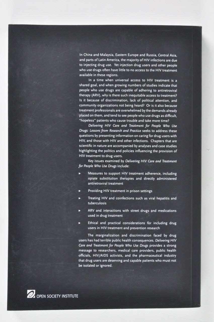 livre, "Delivering HIV Care and Treatment for People Who Use Drugs : Lessons from research and practice" (Fournir des soins et des traitements contre le VIH aux usagers de drogues. Leçons tirées de la recherche et de la pratique)