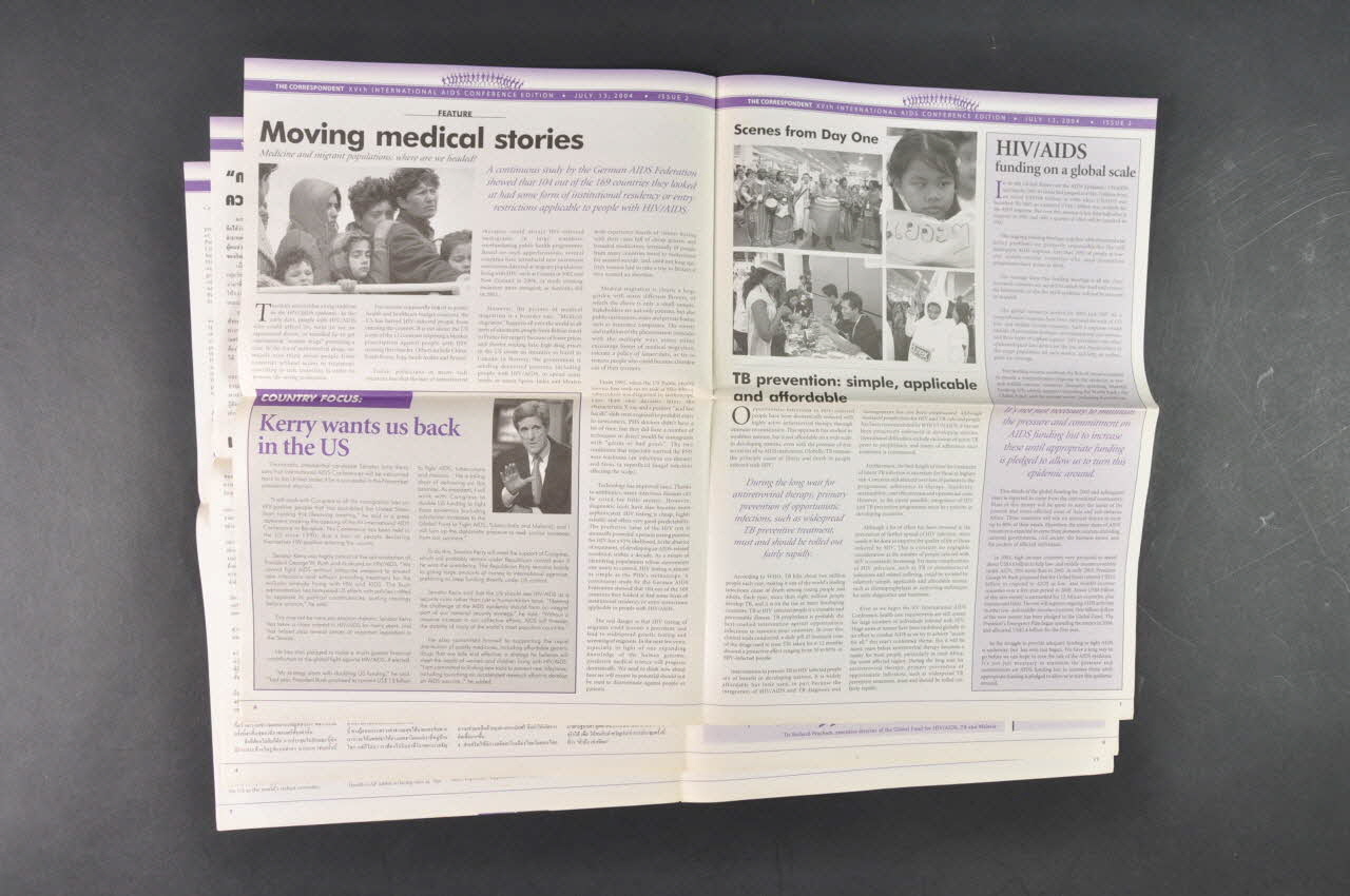 In this issue: // G7: Donate before it's // too late? 2 // HIV testing in resource poor // settings 3 // Questioning the Global Fund's // effectiveness 3 // "Many small voices can make // one big voice" 3 // Thai articles 4-5 // [...] // Moving medical stories 6 // Kerry wants us back in // the US 6 // TB prevention: simple, // applicable and affordable 7 // HIV/AIDS funding on a global // scale 7 // Bridgning the North-South // divide 8 // Stigma: Same old story 8 // Microbicides versus the // female condom 9 // Entre the Entry Inhibitors 9 // Is prevention as easy as // ABC? 10 // Will ICASA discussions fllow // through at Bangkok? 10 // Polls reveal Thai attitudes to // AIDS 10 // We've read it for you 11 // When the doctor becomes a // patient 11 // Exodus: snub or bungle? 12 (Sur l'encart violet, à gauche), sur la couvertureTitre