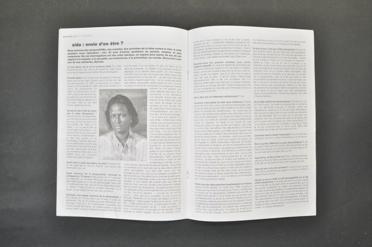 - Edito : sur les protestations à propos du mariage fictif à Notre Dame et sur le droit à la santé des étrangers. // - Pour le droit à la santé des étrangerEs // - Obtenir l'AME (Aide Médicale de l'Etat), exiger la CMU (Couverture Maladie Universelle) // - Un arsenal juridique pour vos rendez-vous en préfecture // - Statut administratif précaire : l'état d'urgence // - Mon corps m'appartient, le choix me revient // - Nous ne sommes pas celles que vous croyez (à propos des femmes africaines) // - Sida : envie d'en être ? Interview d'une militante : Sylvana (originaire du Burundi) // - Expulsions : la France s'industrialise // - Prise en charge médicale tardive // - "Le noir est une couleur". Sur la mobilisation des femmes prostituées africaines du bois de Vincennes. (au dos de la première de couverture)Décor