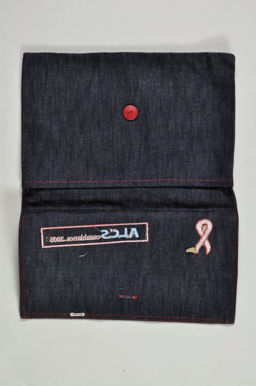 Un ruban rouge est brodé sur le rabat, en surpiquage rouge, tout comme le nom de l'association.Décor