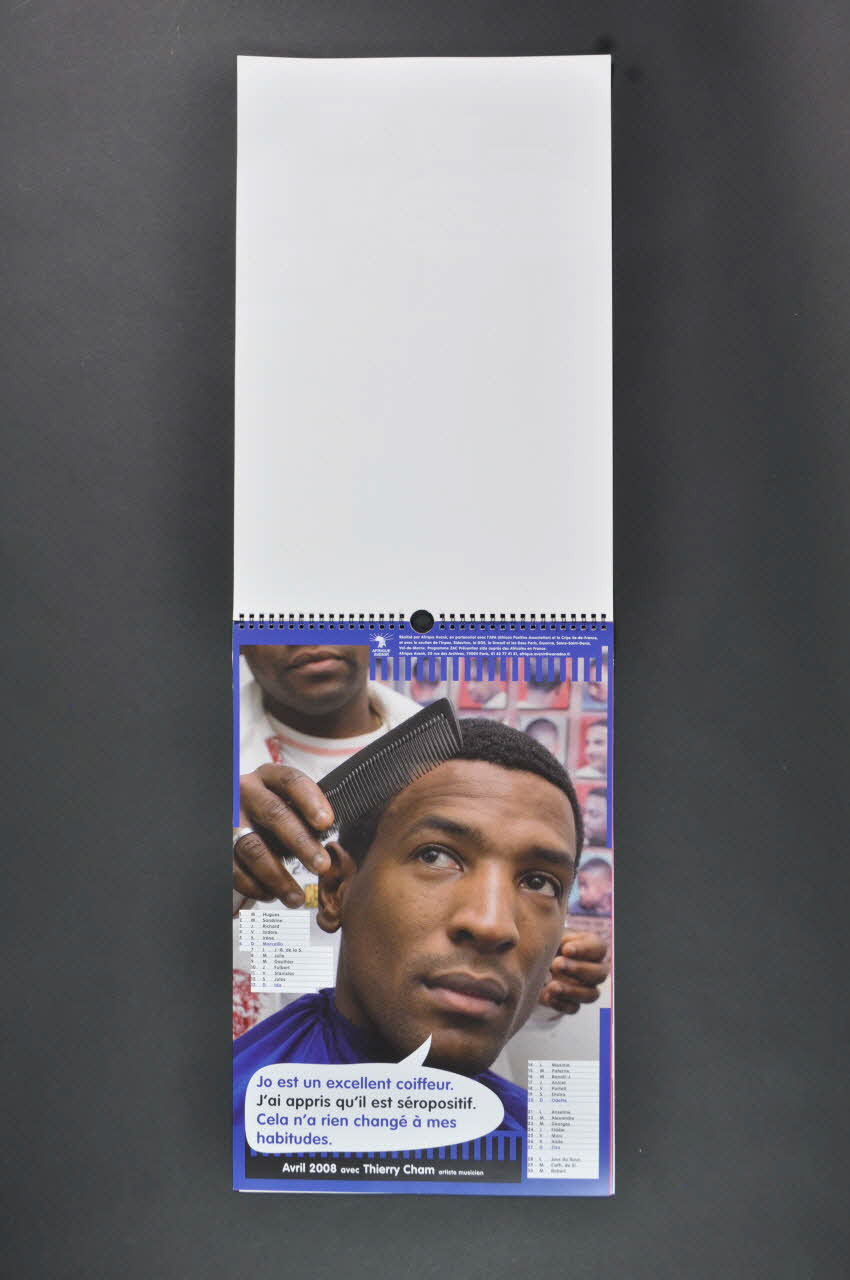 Viviane Etienne, artiste camerounaise de la chanson. // Yéra Dembele et Thomas Omores, Fédération des associations franco-africaines de développement (Fafrad). // Assiatou Bah Diallo, rédactrice en chef, magazine Amina. // Thierry Cham, artiste musicien. // Pénélope Huguette Bouloy, infirmière, CDAG de l'hôpital Avicenne à Bobigny. // Abderrahmane Sissako, cinéaste. // Hacina Zermane, écrivaine. // Professeur Willy Rozenbaum, service des maladies infectieuses et tropicales de l'hôpital Saint-Louis, codécouvreur du VIH. // José Songa, président de l'association Bondeko 'La fraternité'. // Greg Mazare, chanteur lead du groupe Original H. // L'Archevèque Desmond Tutu. // Docteur Alioune Blondin Diop, président de l'association Médecins d'Afrique / Europe. (Au recto des pages), en basSlogan