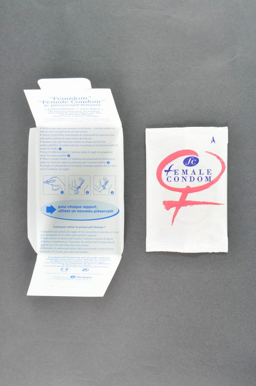 PRESERVATIF FEMININ GRATUIT, rectopour chaque rapport, / utilisez un nouveau préservatif (A l'intérieur. En dessous, dans un encadrement bleu :)"Femidom" / "Female Condom" / le préservatif féminin / polyuréthane /sans latex / Un nouveau choix pour les femmes / Une méthode contraceptive qui offre une protection efficace contre les I.S.T. dont le VIH/sida (A l'intérieur.)fEMALE / CONDOM (Sur la pochette en plastique.)Signature