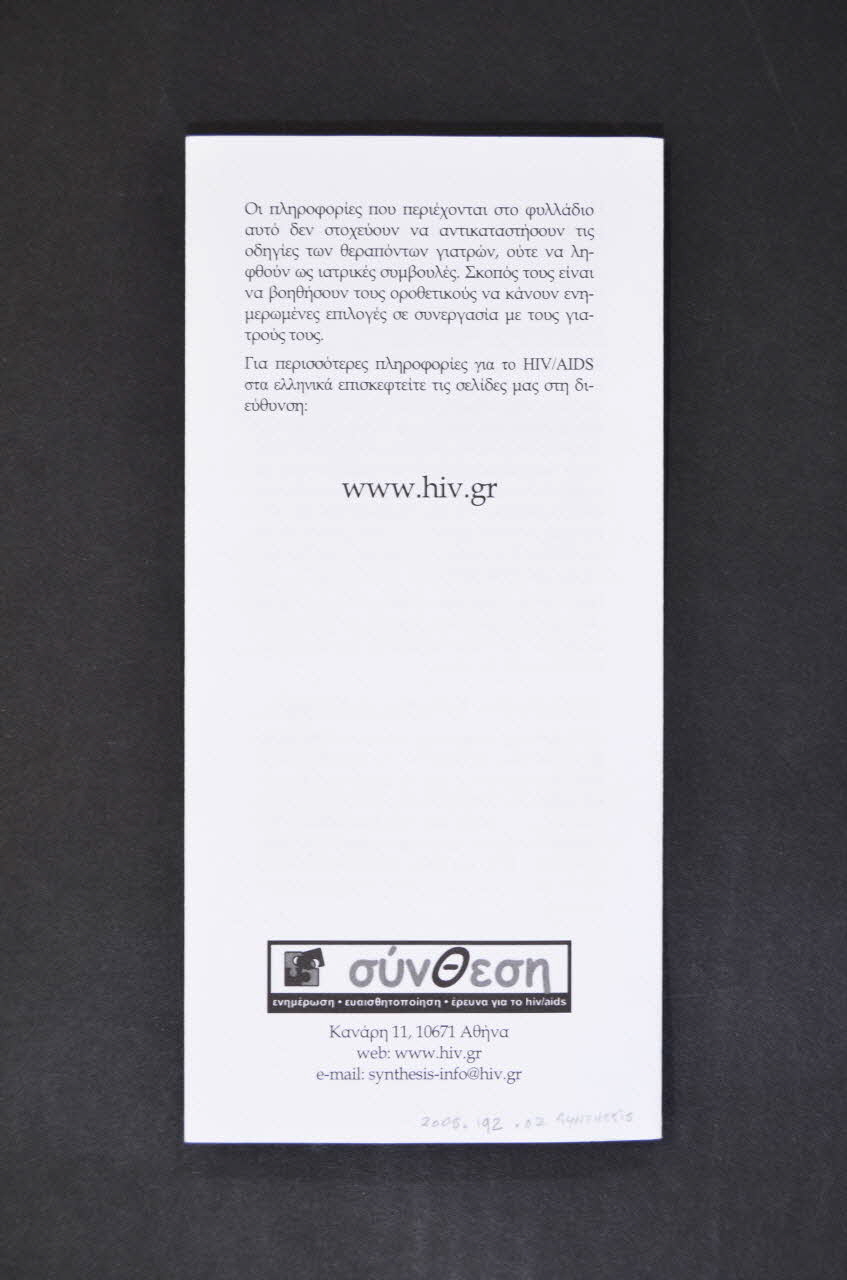 www.hiv.gr (Site internet inscrit au dos du dépliant, en noir), en hautDécor