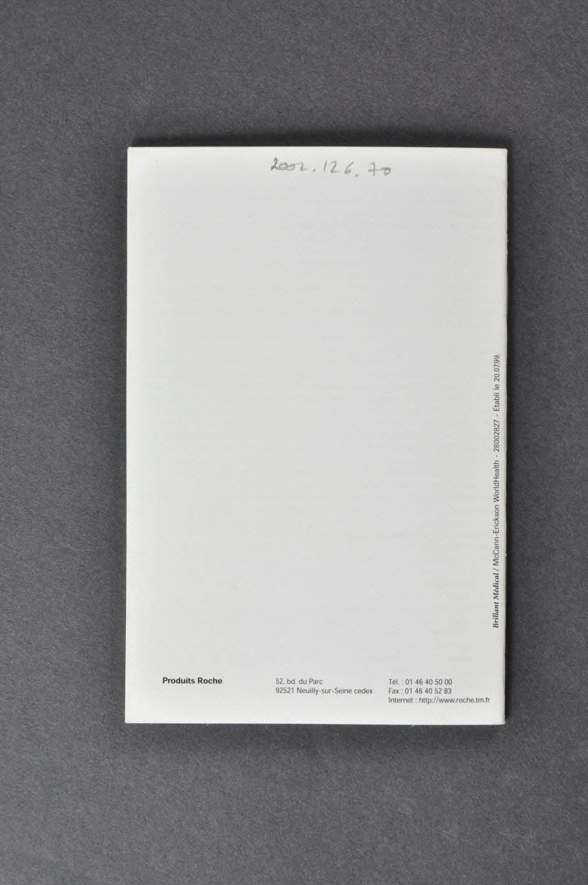 ROCHE (dans un hexagone bleu, dans l'angle supérieur droit), sur la couvertureDécor