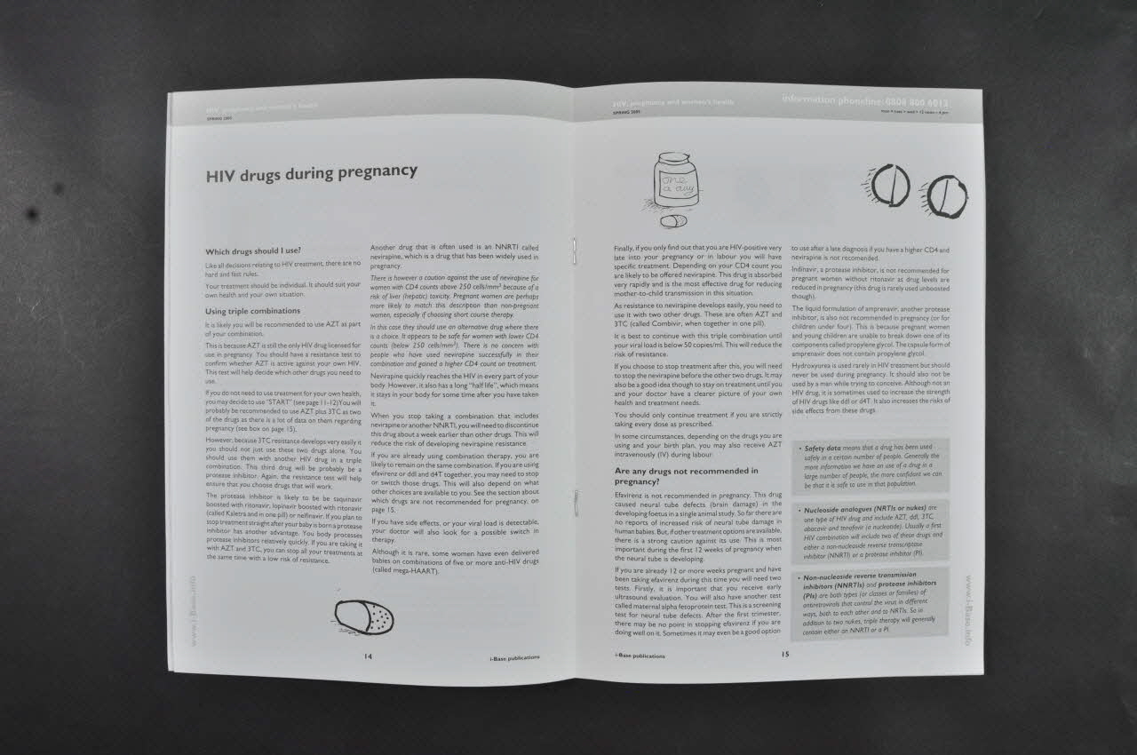 Introduction 3 // Background and general questions 3 // Additional info 6 // Protecting and ensuring the mother's health 7 // Planning your pregnancy 8 // Prenatal care and HIV treatment 11 // HIV drugs during pregnancy 14 // Resistance, monitoring and other tests 17 // OI prevention and treatment during pregnancy 18 // Vaccine use while pregnant 18 // Treating recurrent genital herpes during pregnancy 18 // HIV and hepatitis coinfection 18 // HIV drugs and the baby's health 19 // Choices for delivery and use of C-section 20 // After the baby is born 22 // Breastfeeding : Risks and options 23 // Tips from the i-base guides 24 // Adherence support charts 26 // i-Base publications 28 (Imprimé en noir sur blanc sur la page 2), à l'intérieurDécor