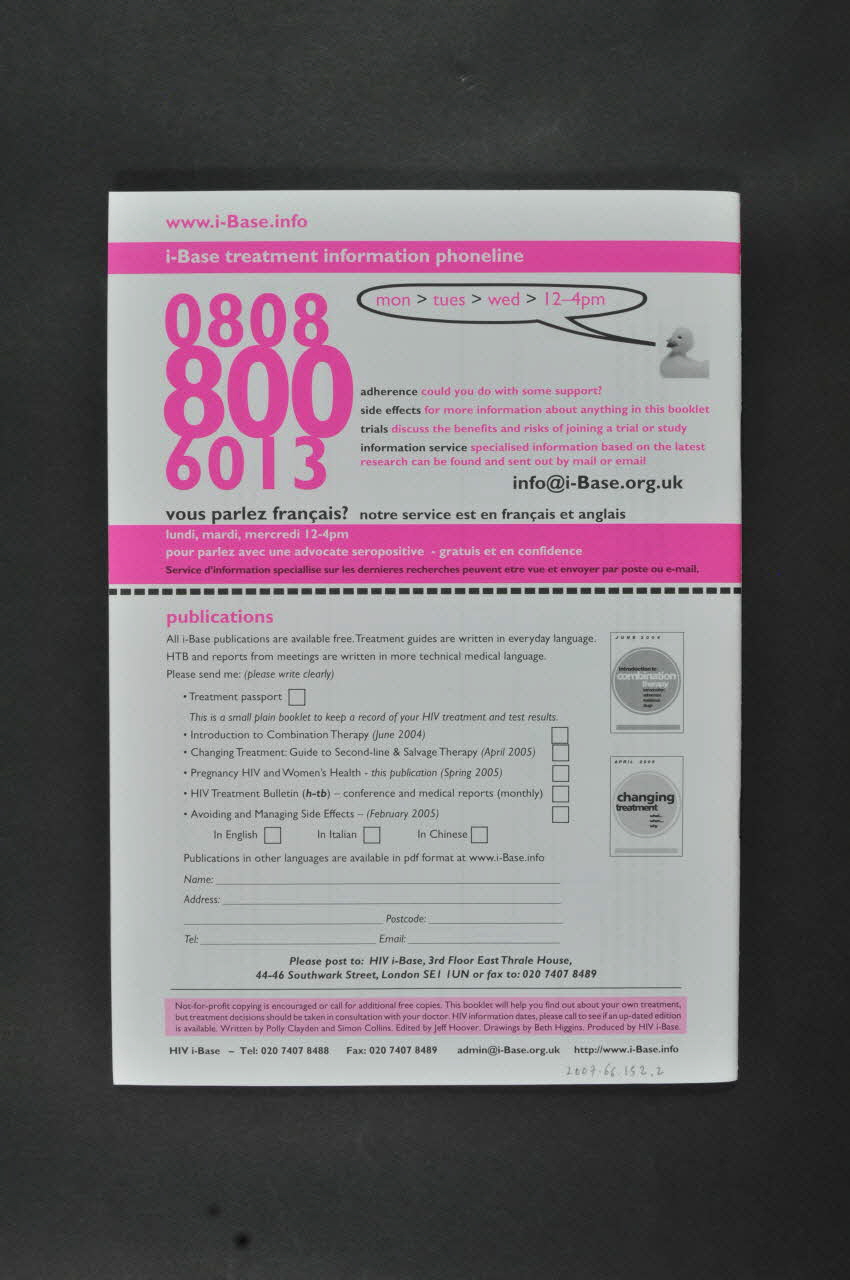 HIV i-Base, 3rd Floor East, Thrale House, 44-46 Southwark St, London SEI (Imprimé en noir sur blanc dans la partie inférieure), versoNuméro