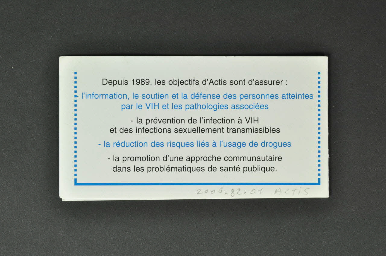 Carte d'information, "ACTIS / Soutenir. Prévenir. Réduire les risques"
