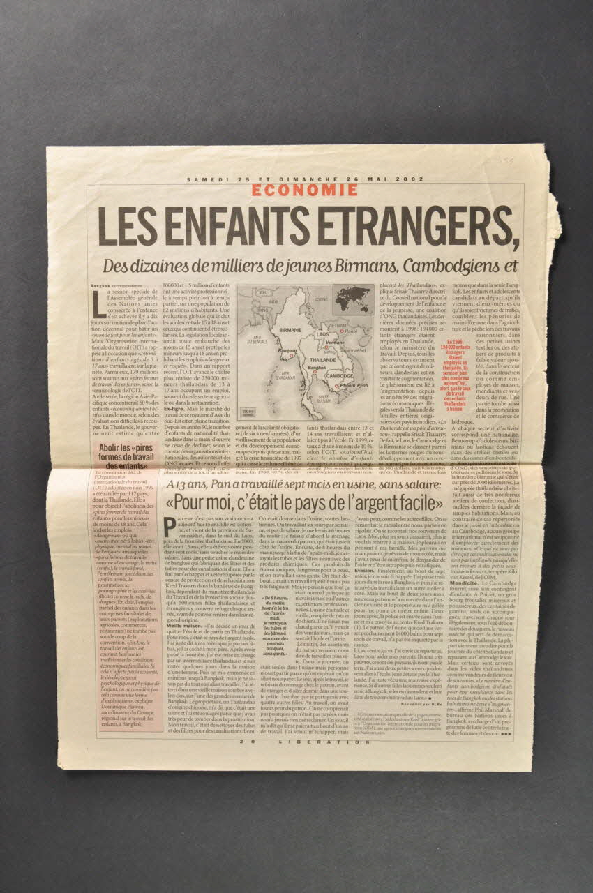 Article paru le lendemain d’un rassemblement de migrants à la Fontaine des Innocents. Rassemblement au cous duquel a été brandie la pancarte 2002.95.1. Rassemblement qualifié comme première manifestation de ce genre, organisée pour sortir de l'ombre