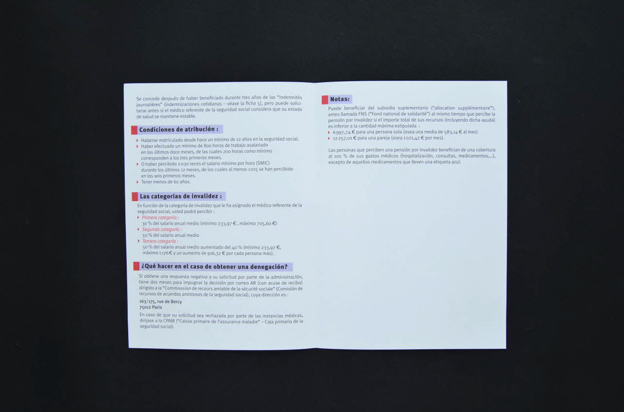 Dépliant, "Ficha social n°6 La pension de invalidez (La pension de handicap)