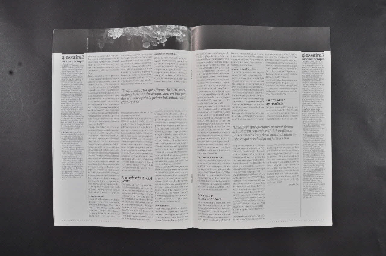 ASSOCIATIONS // VLS ferme ses portes : Patrice Meyer, un homme blessé 2 // // QUALITE DE VIE // Mieux vivre avec le VIH, mieux vivre avec les traitements 4 // // IMMUNOTHERAPIE // Le rêve fou de la vaccinothérapie... 5 // // INTERLEUKINE 2 // Arrêter les antirétroviraux et s'injecter de l'IL2 8 // // IMMUNOTHERAPIE // De nouvelles stratégies thérapeutiques (Imprimé en noir sur blanc et en blanc sur gris pour les titres sur la colonne de gauche), sur la couvertureNuméro