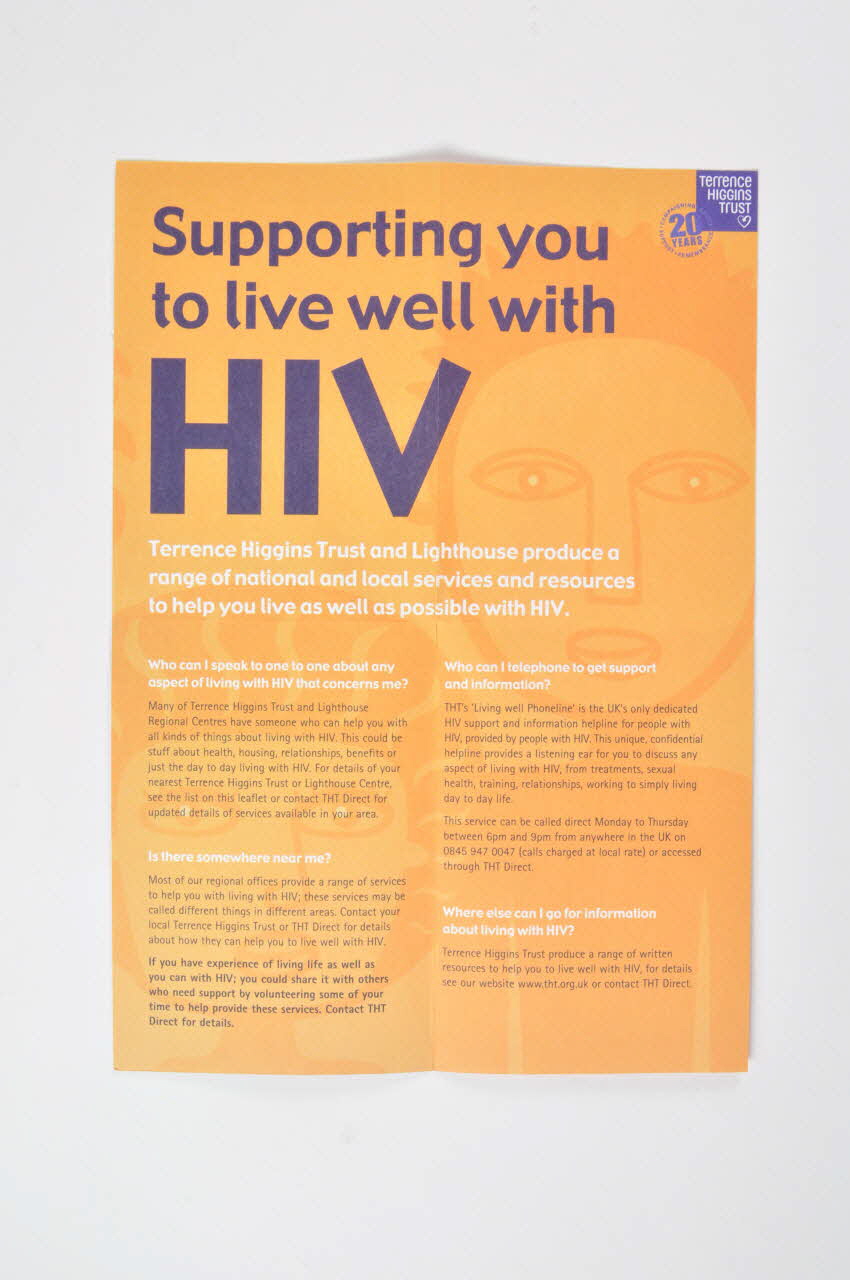 Are you living well with HIV? (en haut, au recto), sur la couvertureSupporting you to live well with HIV // [...] // // Who can I speak to one to one about any aspect of living with HIV that concerns me ? // [...] // // Is there somewhere near me ? // [...] // // Who can I telephone to get support and information ? // [...] // // Where else can I go for information about living with HIV ? // [...] // // What does living well mean ? // [...] // // How have you managed so far ? // [...] // // What can Terrence Higgins Trust and Lighthouse do for you ? // [...] (titres des paragraphes)Auteur