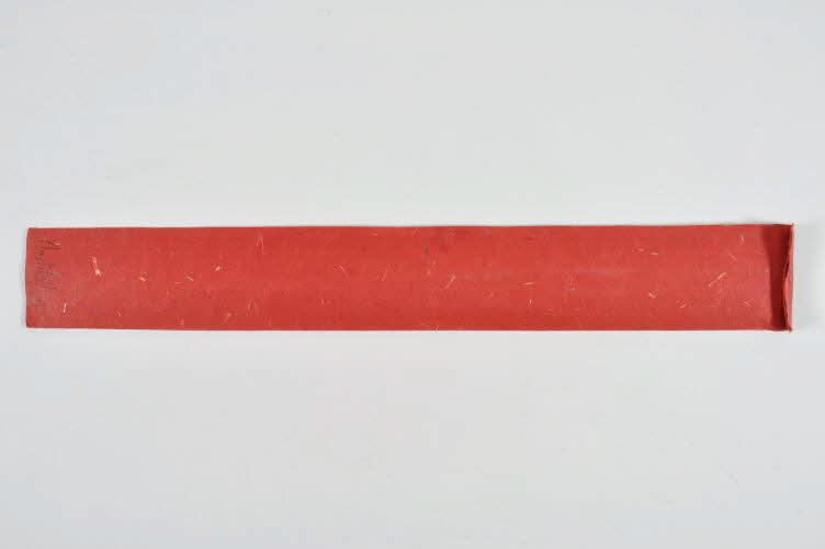 Etui en papier fort rouge dénommé "étui d’encens". Sur l'étui, en rouge, figure le dessin d'une soeur brandissant un encensoir. L'étui fermé par une agrafe,contient des bâtons d'encens. Au dos, écrit à la main, « méditation », mot individualisant l’étui.Inscriptions