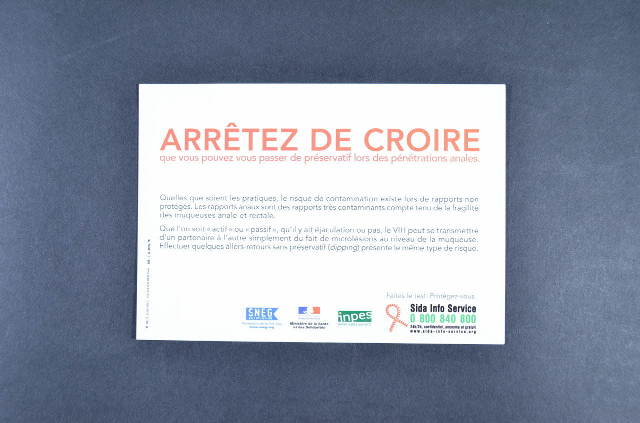 (ARRÊTEZ DE CROIRE // que vous pouvez vous passer de préservatif lors des pénétrations anales), versoDécor