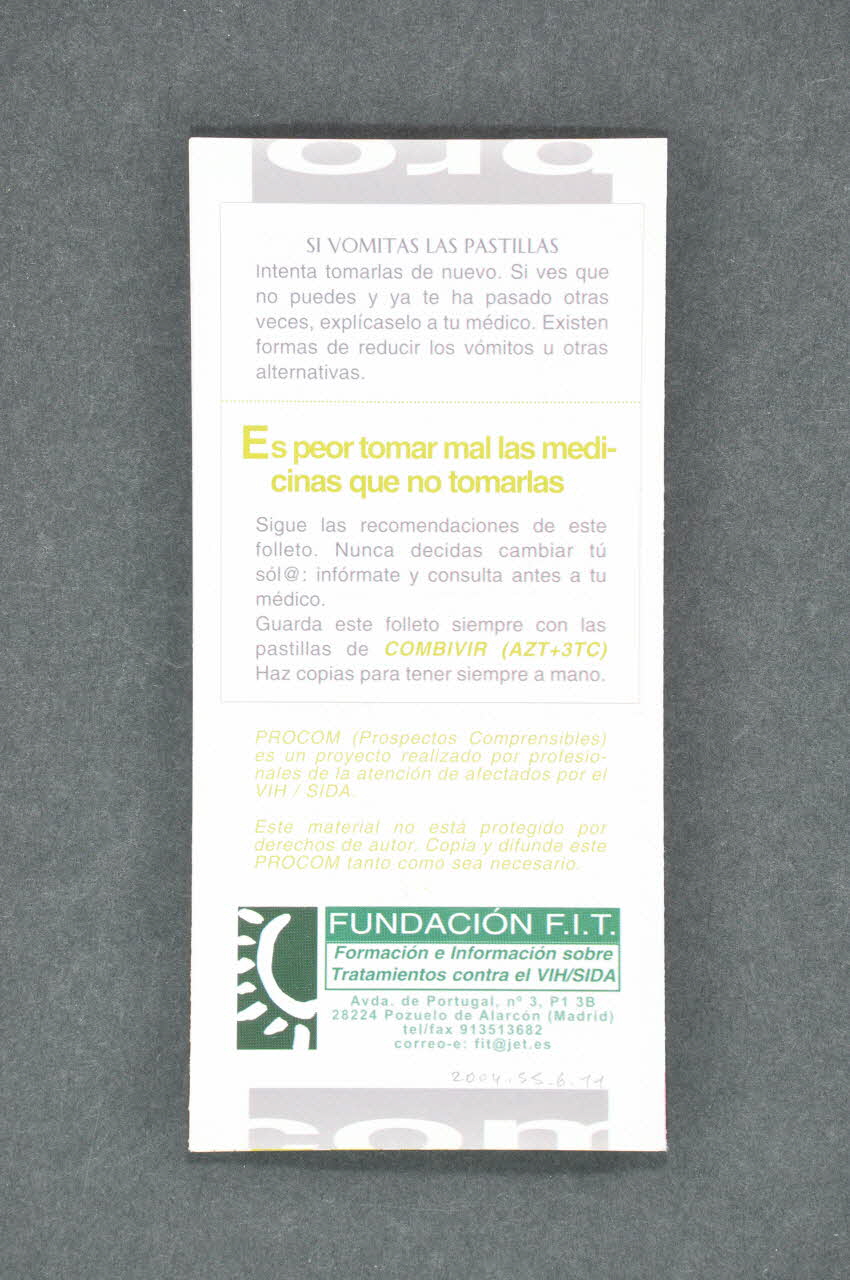 Fundacion F.I.T. // Formacion e Informacion sobre // Tratamientos contra el VIH/Sida / Fundacion F.I.T. // Formacion e Informacion sobre // Tratamientos contra el VIH/SIDA, versoTitre