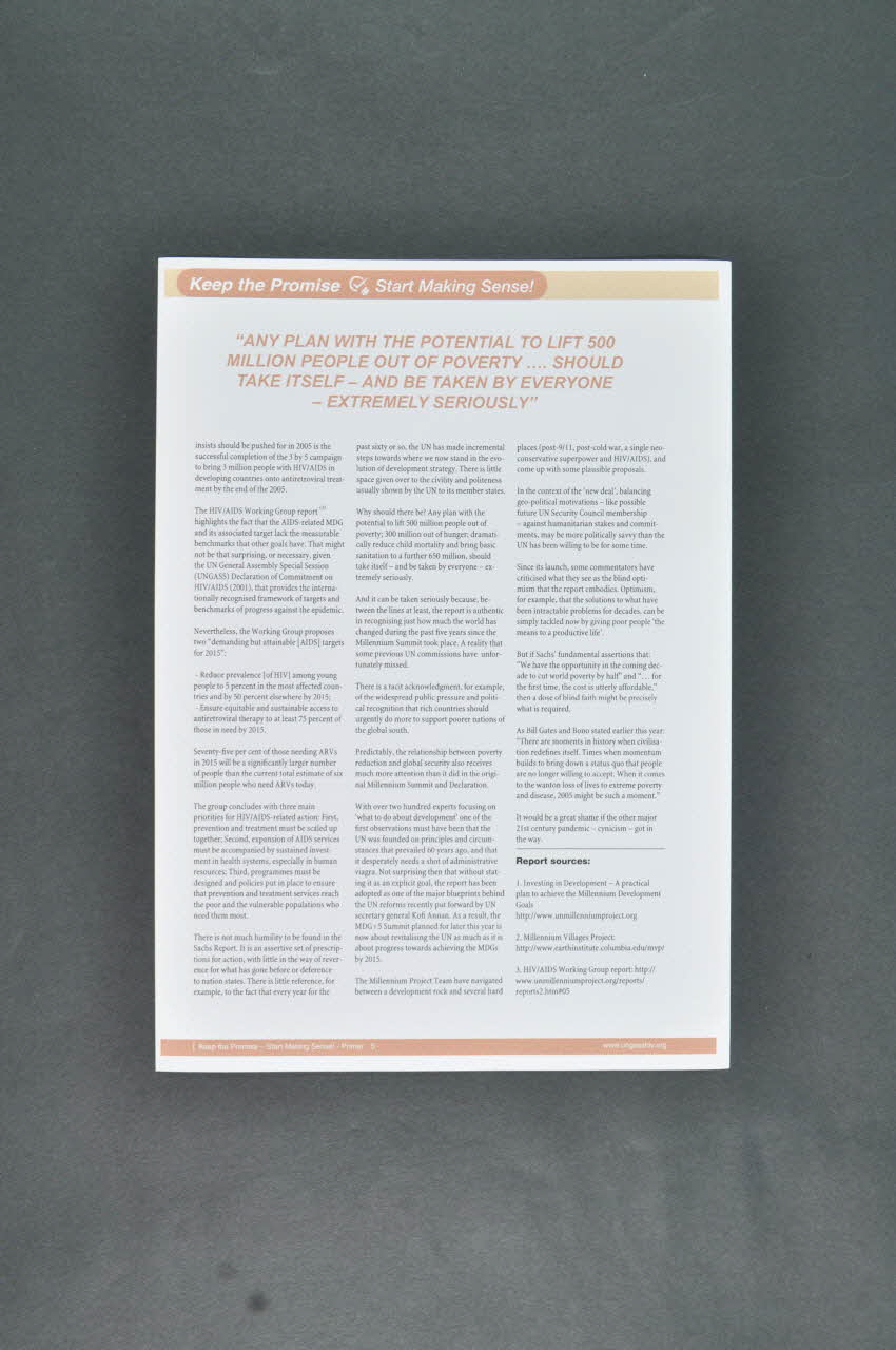 Fichier, "Keep The Promise. Start making sense" (Tenez la promesse. Commencez à lui donner un sens" / n°5 Sachs Appeal The new deal for aid and UN endurance