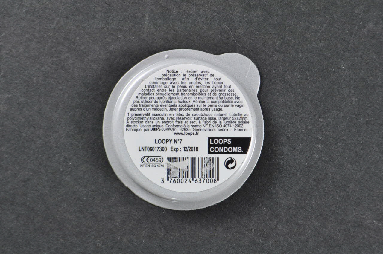 Au dos se trouve le nom de la marque et un mode d'emploi. Un préservatif est rangé à l'intérieur.Décor