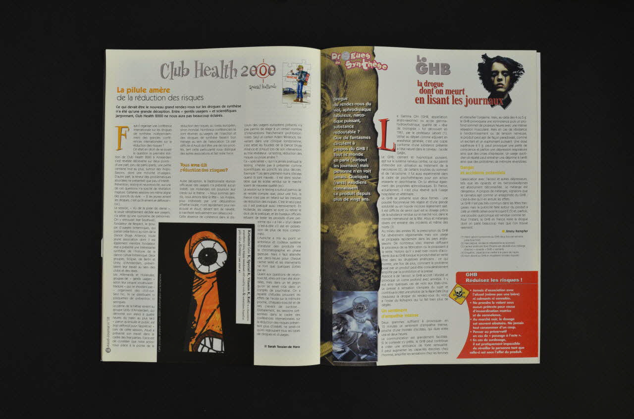 Sommaire en partie commenté : - p.2 Pleine page : numéro de Sida Info Service. - p.3 Editorial et sommaire - p.4-5 Brèves - p.6 "Vous avez dit communauté ?" "Une expérience que l'on peut qualifier de communautaire a fonctionné dans le cadre de la lutte contre le sida, la mobilisation des homosexuels contre les dévastations causées au sein de leur communuté. De leur côté, les usagers de drogues peuvent-ils utiliser ce modèle pour lutter contre la discrimination dont ils sont l'objet ?" - p.7 "Paris, haro sur les drogués" "Le XVIII° arrondissement parisien reste le laboratoire de la réduction des risques de la capitale. Avec ses expériences innovantes comme la substitution, il est devenu un pôle pilote - mais dérangeant - des principales actions de réduction des risques." - p.8-15 "Spécial Hollande" : "La médaille et son revers" (aménager le placard ou en faire éclater les portes) / "La fête des usagers" (organisée par l'association LSD Project) / "Charte des dealers" / "Cannabis Cup, les fric brothers" - p.16-17 "Réduction des risques et cannabis" - p.18 "Club Health 2000. La pilule amère de la réduction des risques. - p.19 "Le GHB. La drogue dont on meurt en lisant les journaux - p.20 "After Moody Blues". "L'un des revers de la consommation d'ecstasy, c'est la dépression qui suit. Voici quelques trucs qu'ASUD a testé pour vous afin d'atterrir en douceur." - p.21 "Produits" - p.21 Campagne du CFES : "Sida. Aujourd'hui on peut faire beaucoup. Mais rien sans vous". Seringue, cuiller, eau stérile et "Tous ces objets ont un point commun avec un préservatif : ils ne se partagent pas et ils ne doivent servir qu'une fois." - p.22-23 "Hépatite C. Le dépistage avant tout." - p.24-25 "ABC des abcès" - p.26-27 "Notre culture" (Livres, films) - p.28 "Auto support international" : Présentation de Asut (Barcelone) - p.29 BD : "Bloodi sniffe coke" - p.30-31, 34 Courrier - p.32-33 Adresses utiles - p.35 BD : "Prosélytisme à Paulo"