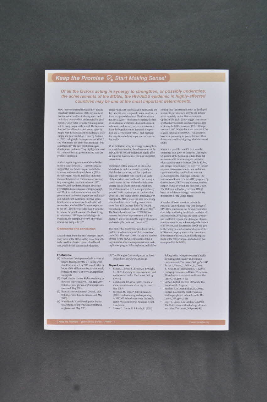 Fichier, "Keep The Promise. Start making sense" (Tenez la promesse. Commencez à lui donner un sens" / n°7 The MDGs and Health (Le Millenium Development Goal et la santé)