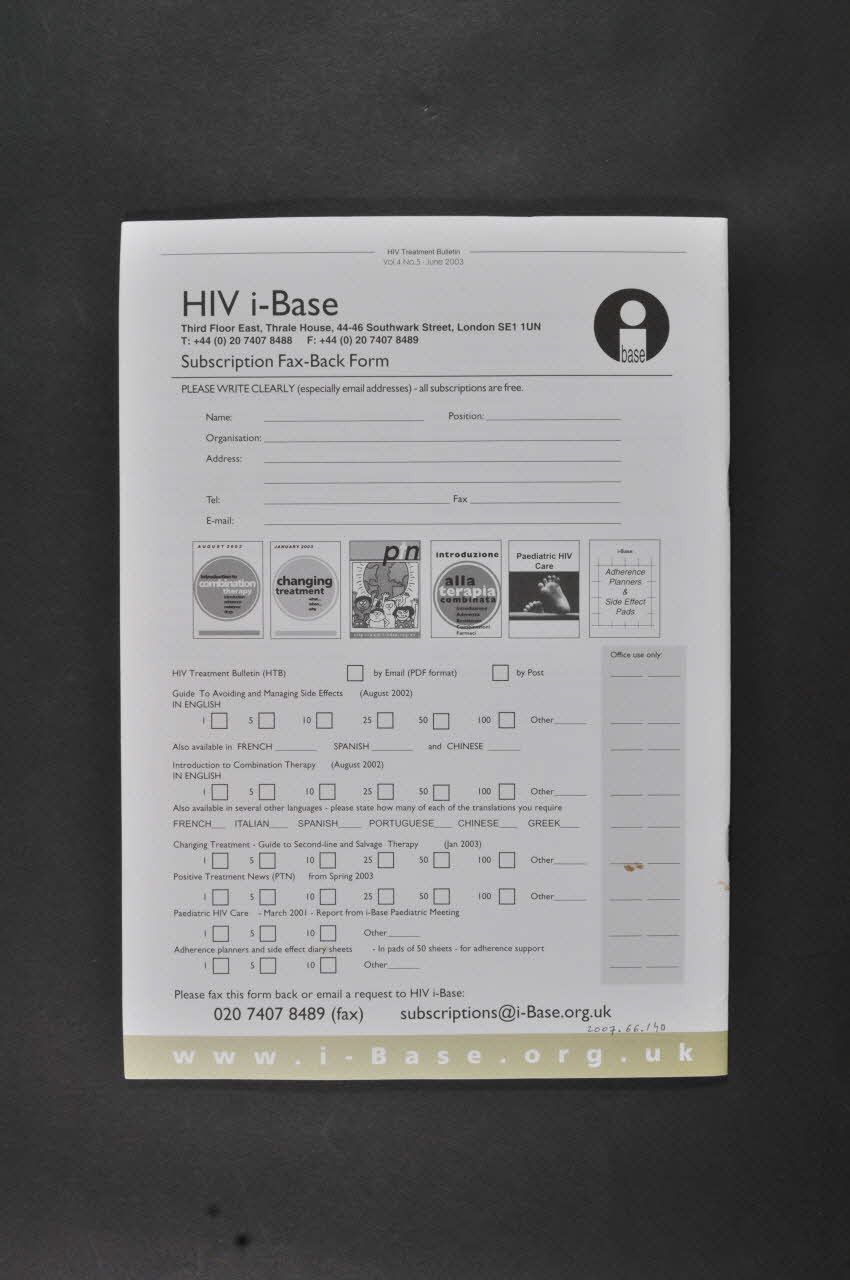 Published by HIV i-Base (En bas, sur le bandeau vert), sur la couvertureDécor