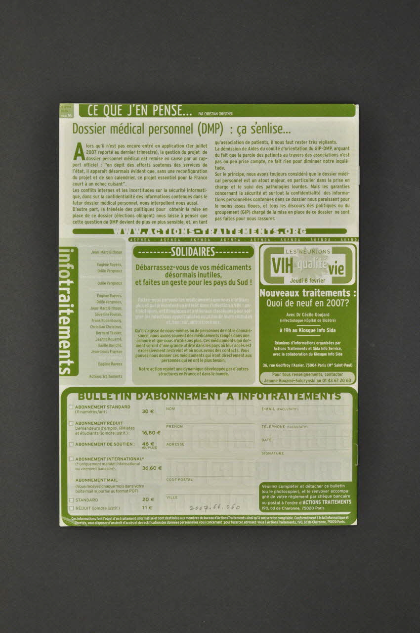 MENSUEL D'INFORMATIONS SUR LES TRAITEMENTS DU VIH/SIDA ET DES CO-INFECTIONS (Sur un bandeau vert, dans la partie supérieure), sur la couvertureAuteur