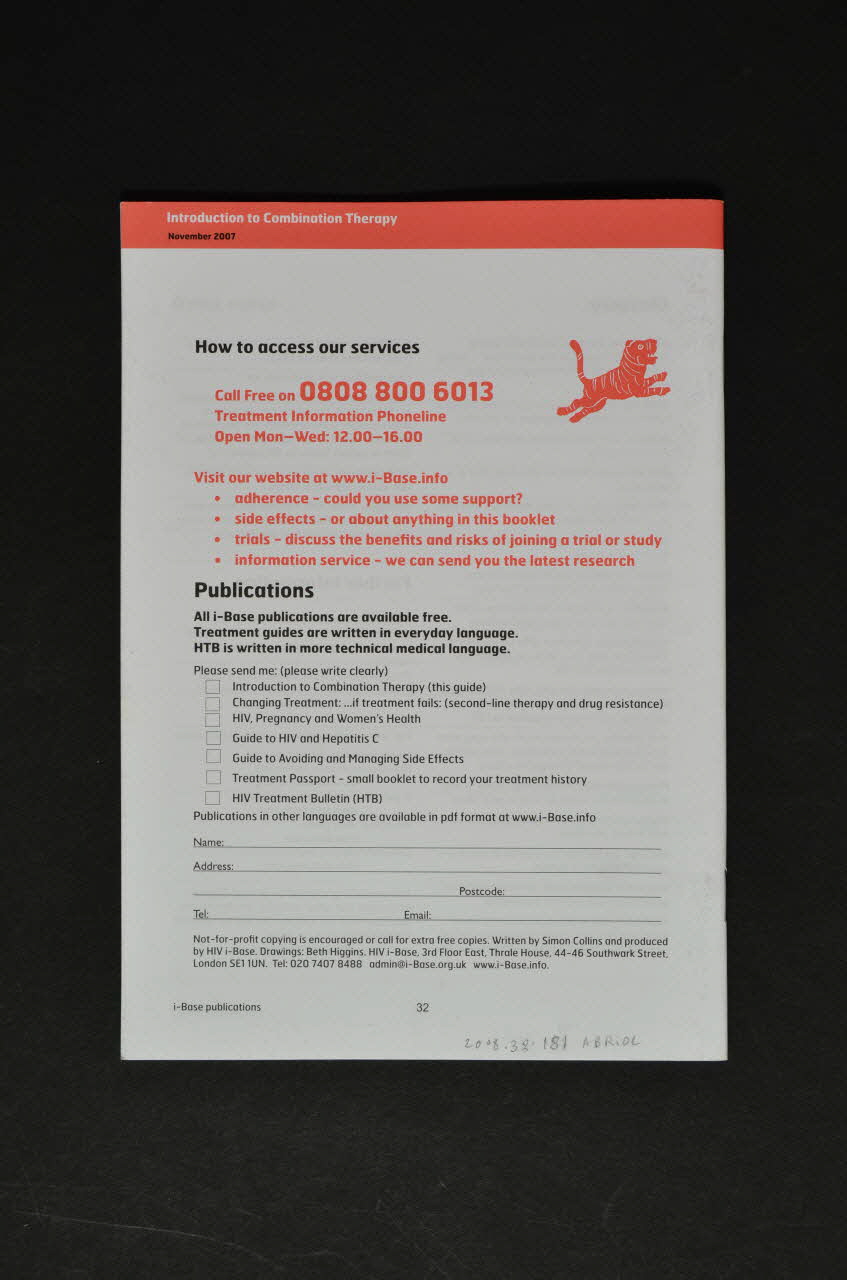 Introduction 2 // What, when, why & other questions ...3 // You and your doctor 12 // Adherence : why it is so important 14 // Resistance 16 // Which drugs which combination 18 // Adherence diary 24 // Record your treatment history 25 (sur la partie supérieure gauche de la page 2)Date