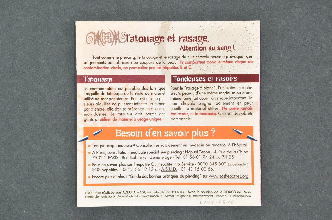 ASUD // // Body // Piercing, // un style. // // INFECTIONS, HEPATITES B ET C // PROTEGE-TOI !, sur la couvertureSommaire